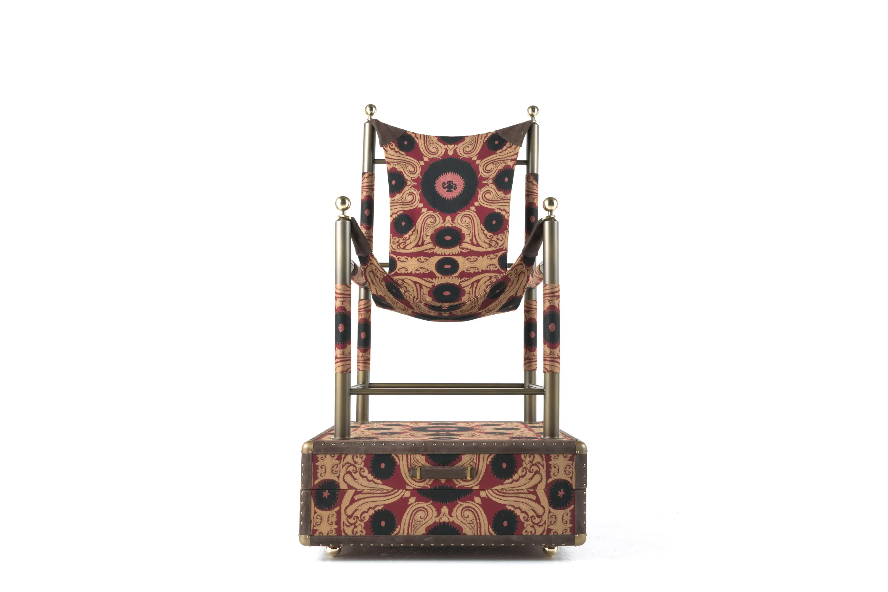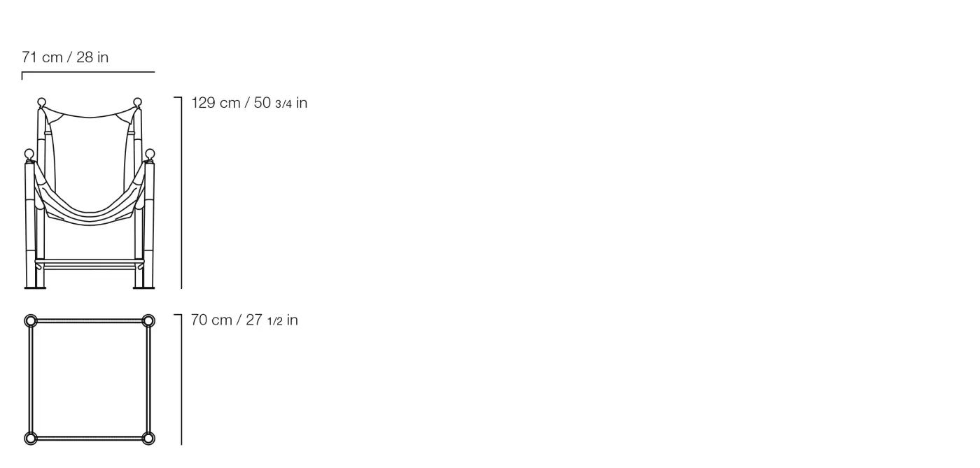 Upholstery in fabric or leather from the collection. Details in leather and knobs in Polished brass.