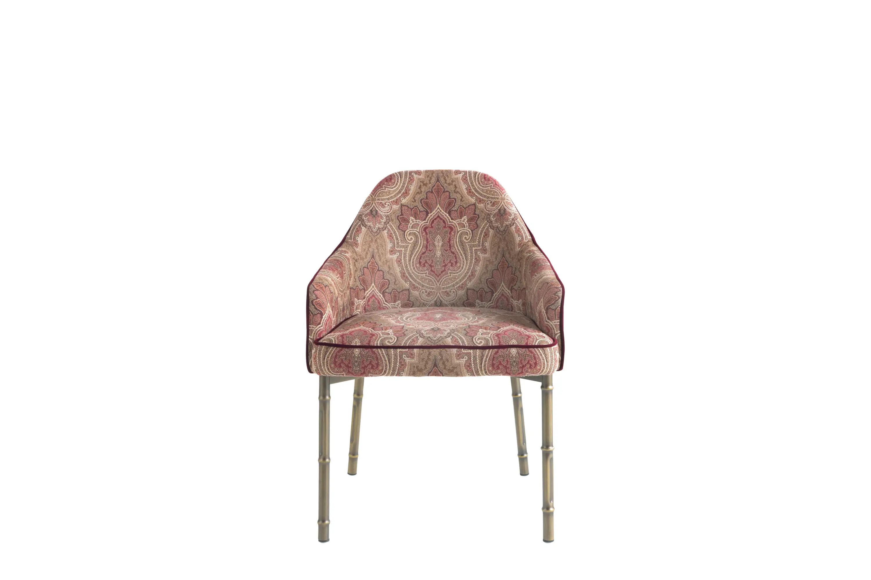 Upholstery in fabric or leather from the collection. Monkey decorative element on the rear back in Polished brass.